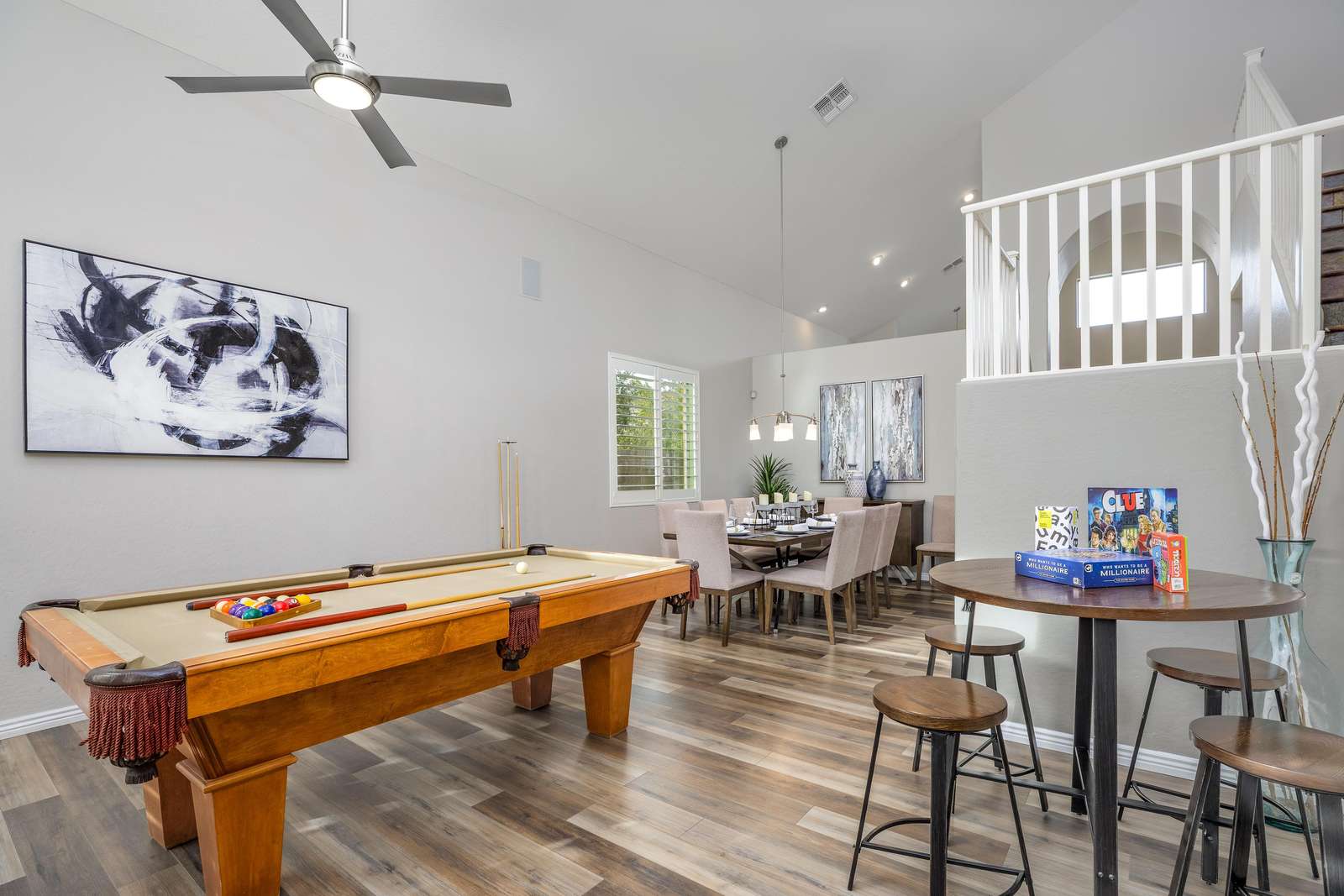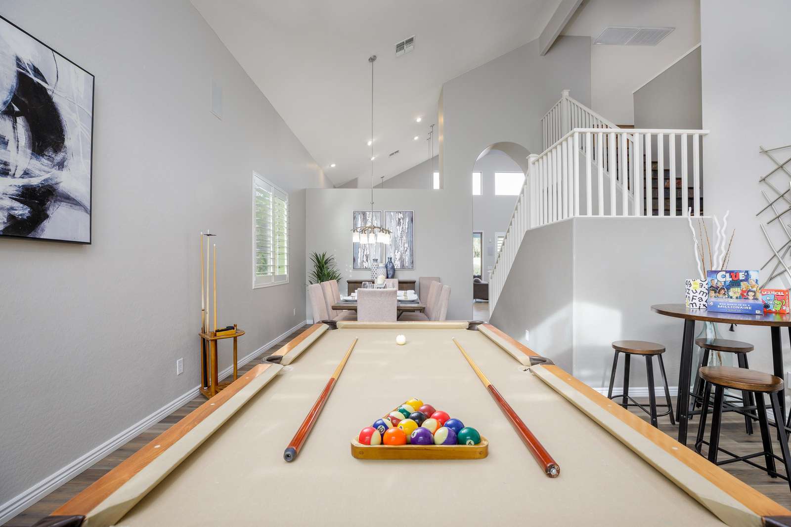 Elevate your Phoenix experience and stay at the beautiful Desert Retreat. Nestled in one of Phoenix’s most popular areas, this home crafts the perfect balance of location, space, and amenities to create the ideal vacation rental. Offering over 3,200 (SF) of livable space with 6 spacious bedrooms and 3 fully updated bathrooms. The home amenities include an oversized private heated pool, fun outdoor putting green, outdoor cornhole, complimentary concierge service, loft with foosball, upgraded full kitchen, formal dining area, pool table, living room, and so much more.