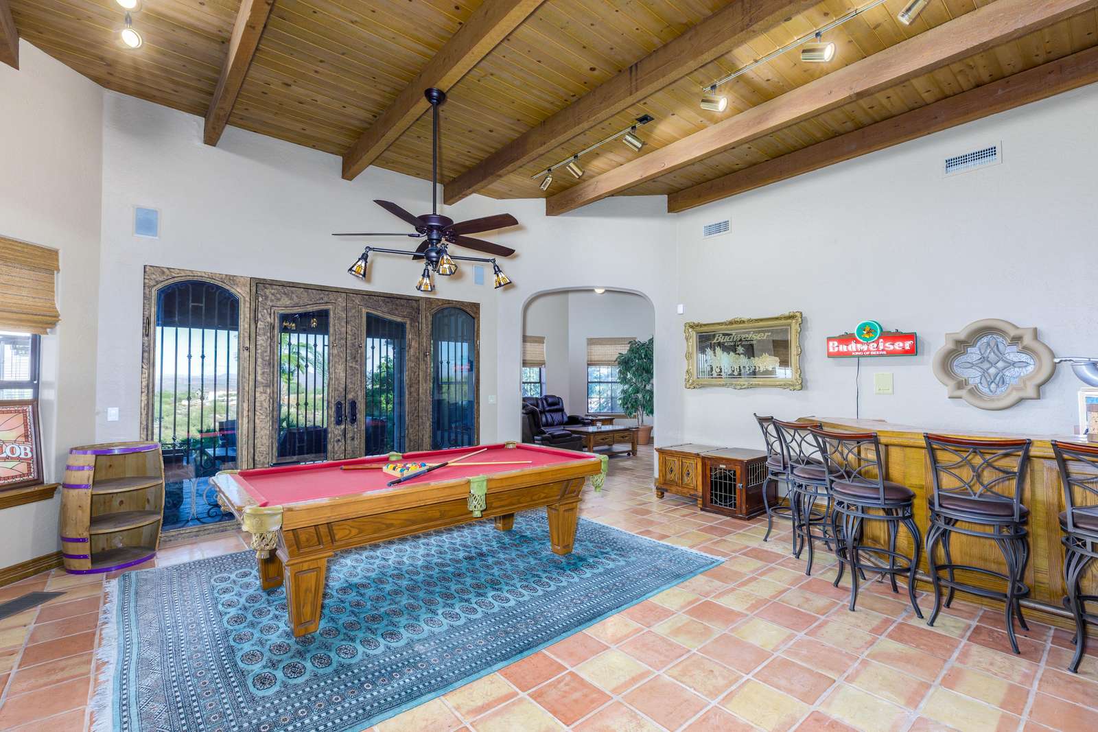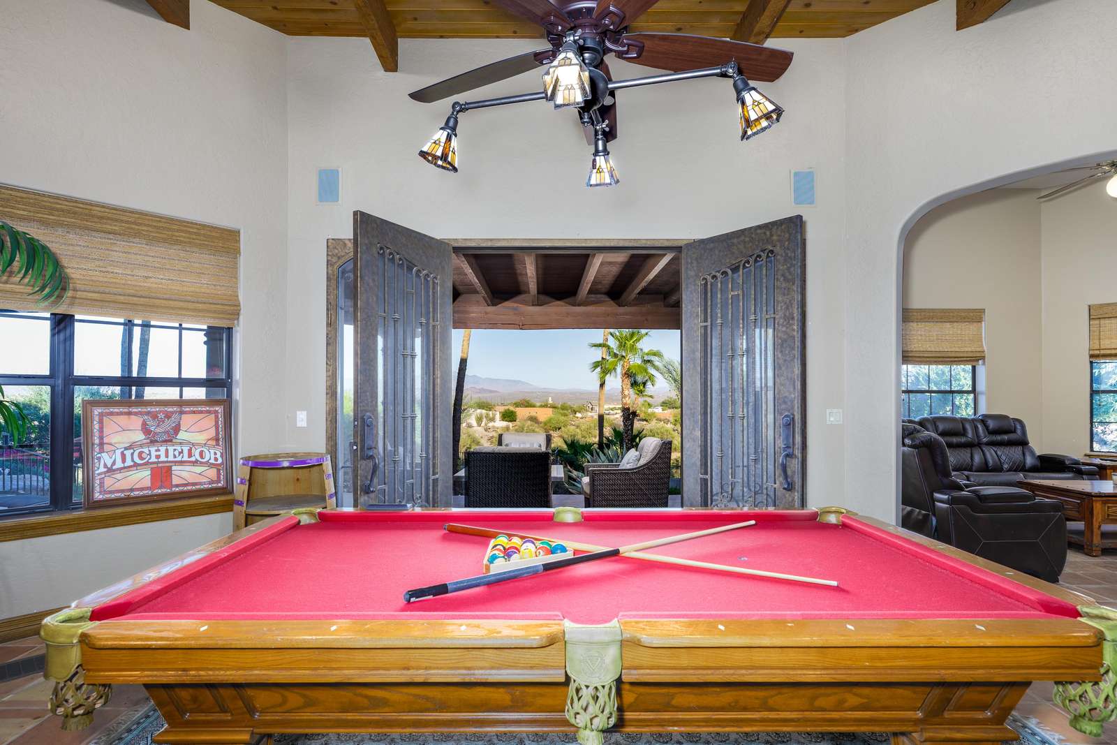 Inside this 4,314-square-foot home, you’ll find bright and comfortable spaces framed by beautiful desert and mountain views. From the living room to the kitchen, primary suite, and game room, every window captures a bit of Arizona’s charm. Enjoy cooking in the well-stocked kitchen or relaxing over a friendly game of pool, the home offers plenty of room to gather, laugh, and relax together.