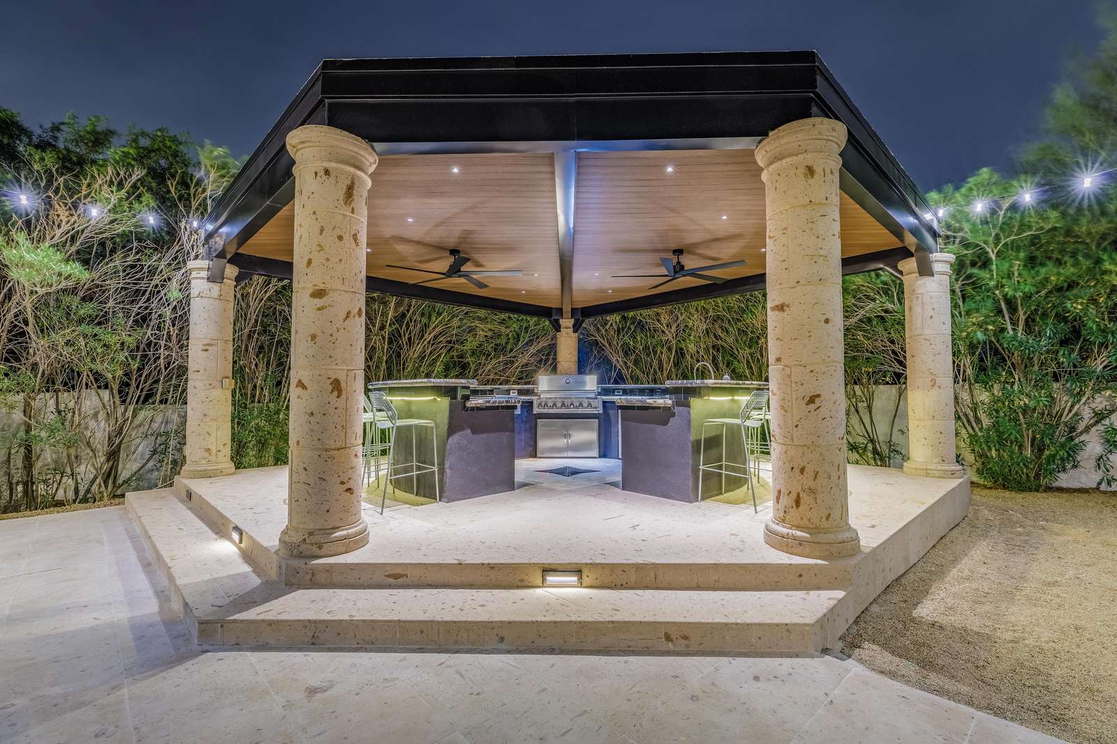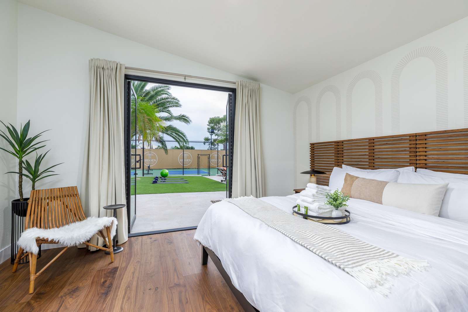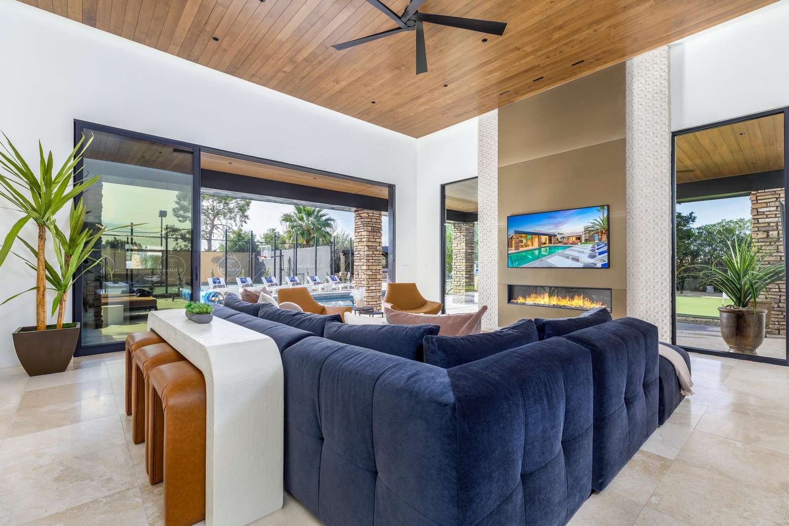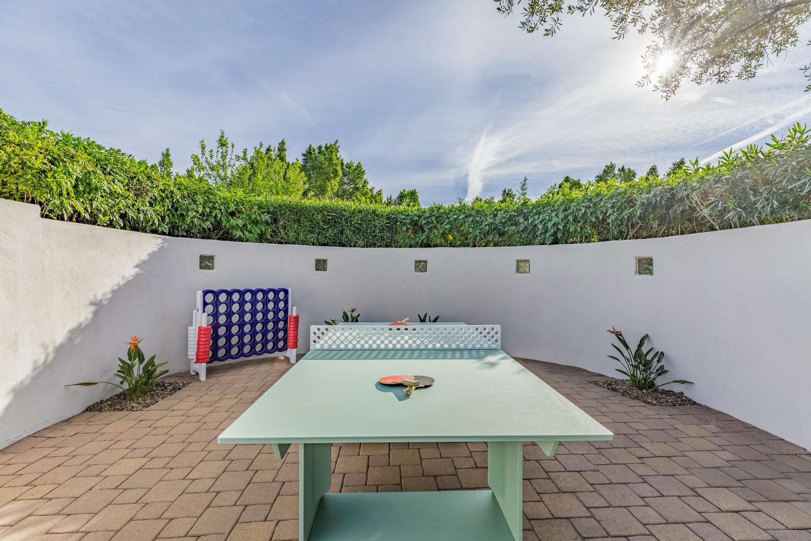 The estate’s private sports court, boasting pickleball and basketball, is perfect for guests who love to stay active. Challenge friends and family to a friendly game, or perfect your skills in the privacy of your own estate.