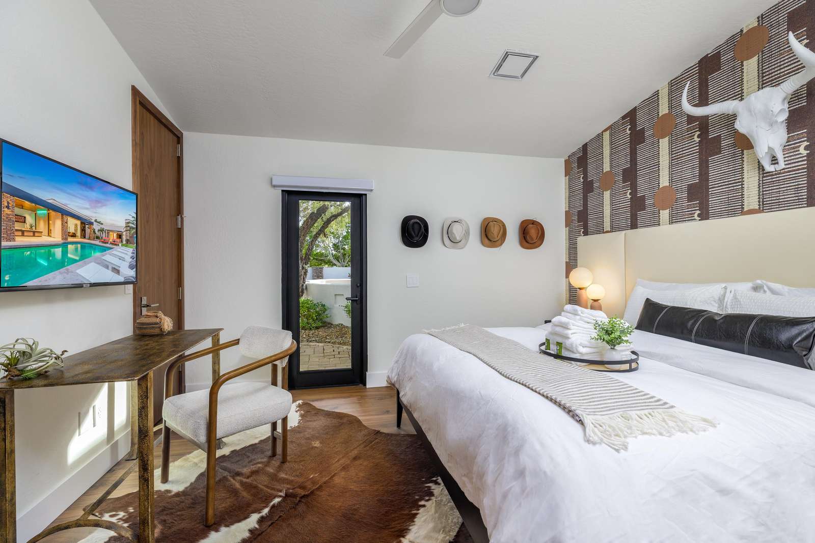 • Bedroom 1 (Primary): King Bed, TV, Sleeps 2 – Desert Luxe Suite